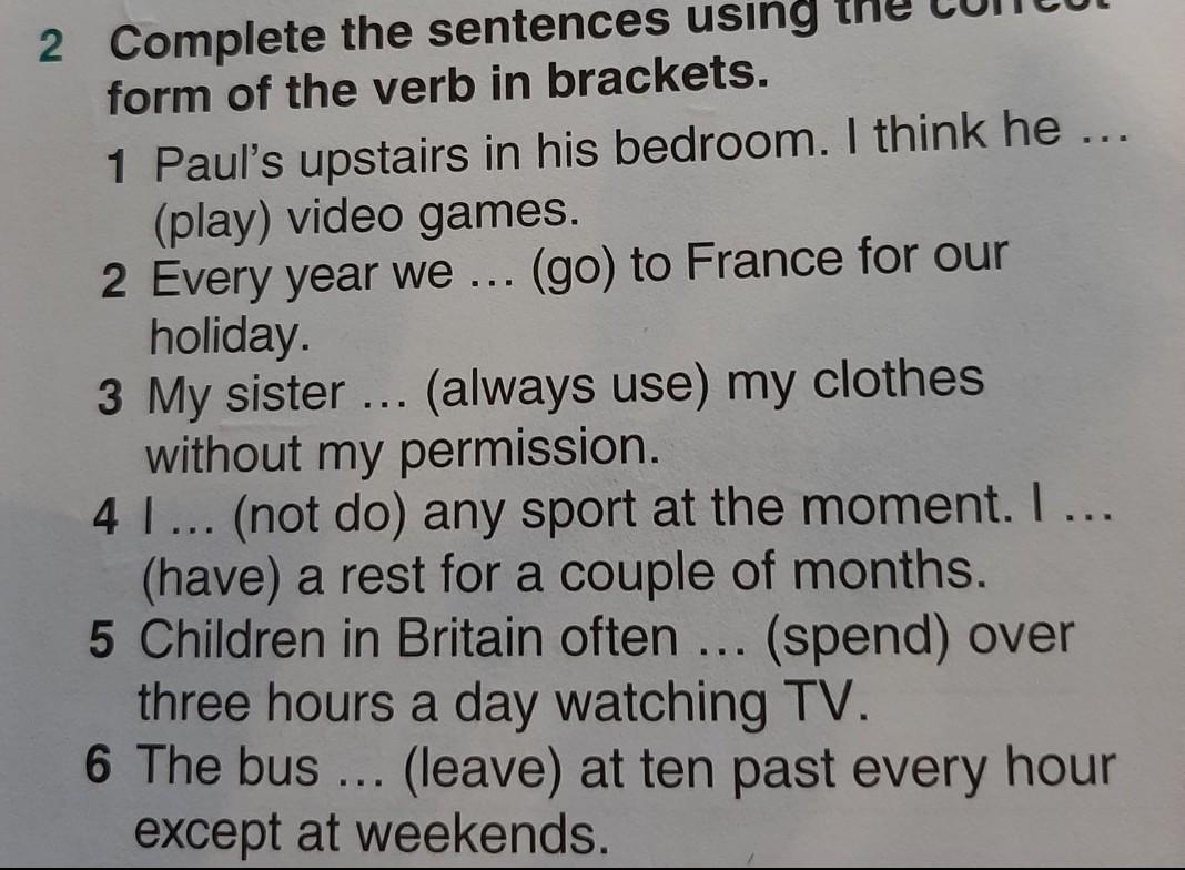 4. I am not doing any sport at the moment. I am having a rest for a couple of months.