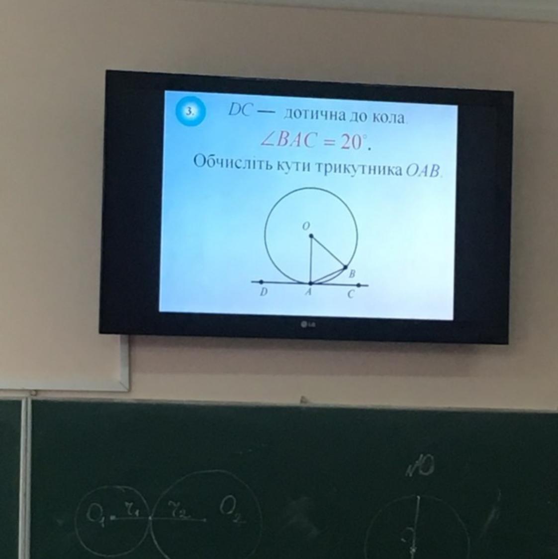 Знаходимо ∠ОАВ, ∠ОАВ = ∠ОАС - ∠ВАС; ∠ОАВ = 90° - 20° = 70°