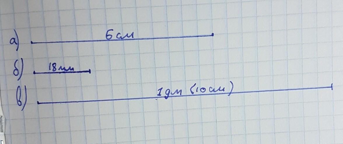 Используя линейку нарисуйте отрезки длиной а)6см б)18мм в)1дм
