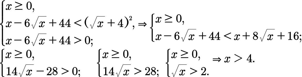Основание логарифма больше единицы, поэтому данное неравенство равносильно системе ниже. Сразу отмечу, что третью строку системы удовлетворяют все х є R, поэтому ее можно опустить. Поскольку х > 4, наименьшее целое решение неравенства - число 5.