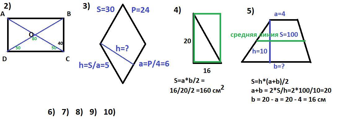 1) Периметр ромба по формуле: Р = 4*а = 24 см.