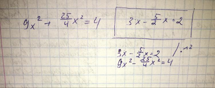 Поднимаем 3х-5/2х=2 в квадрат и получаем ответ: 4