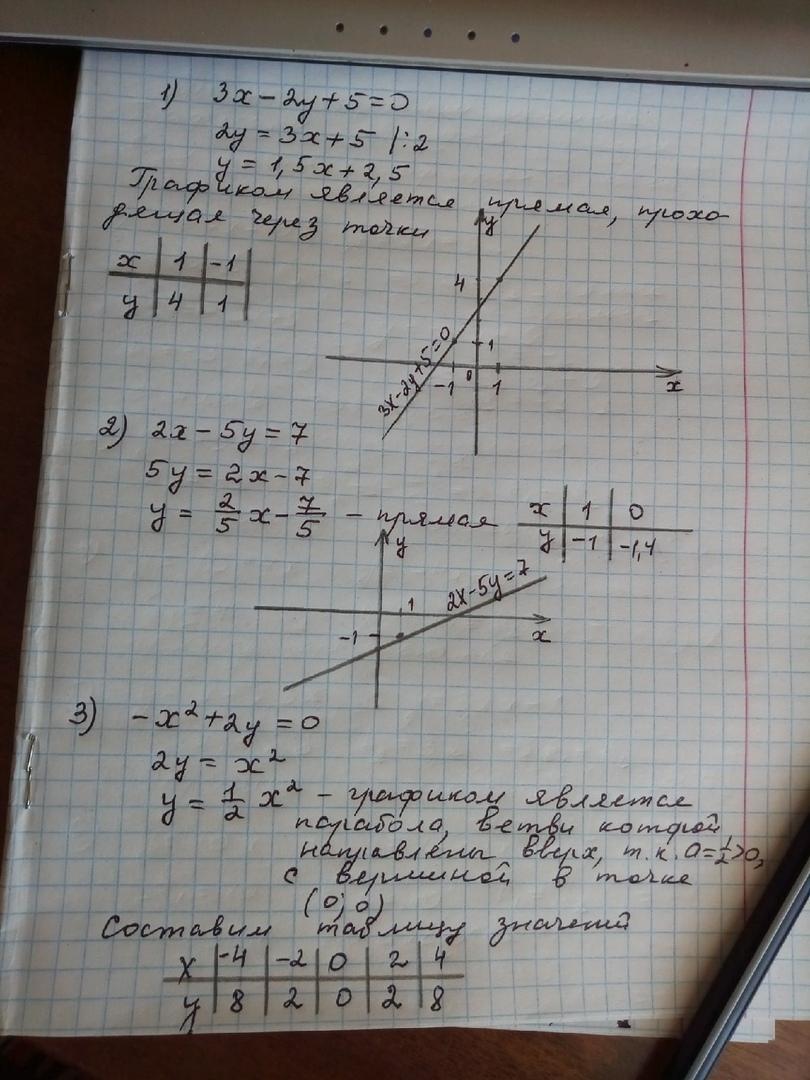 3) -х2 + 2y = 0; 4) Зу + 3х2 – 6 = 0;