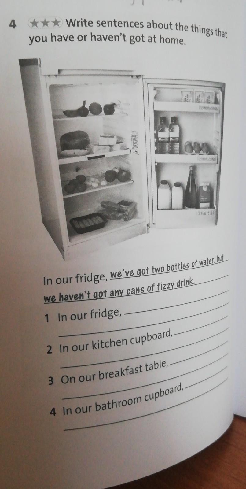 1. In our fridge we've got one bottle of milk, but we haven't got carrot