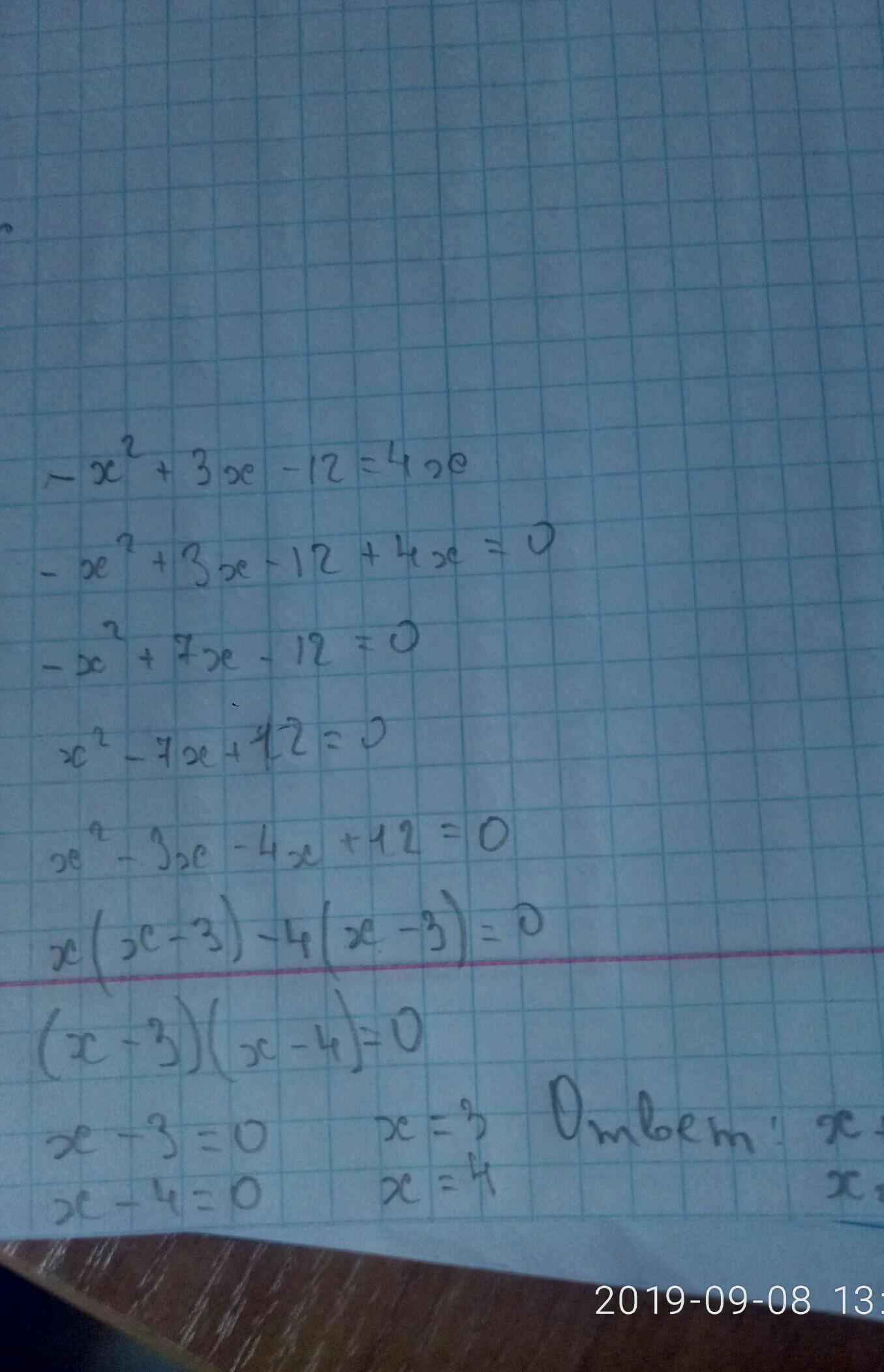 -x2 + 3x - 12 = 4x