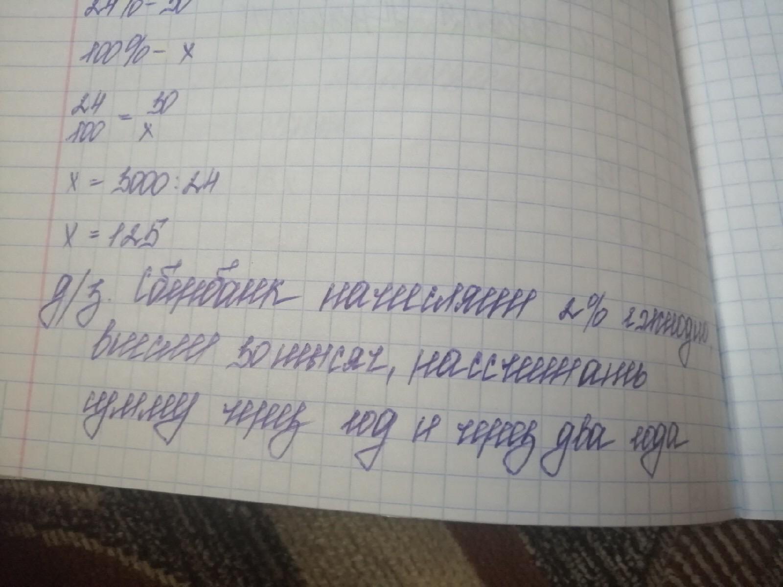 Внесли 30000, прошел год, начислили 2%. Считаем, сколько же добавят на счете: 30000:100*2%=600рублей, это сумма, которую начислили, получаем, что через год сумма будет 30000+600=30600. Прошел еще год, считаем, сколько добавят: 30600:100*2%=612. Суммируем 30600+612=31212.