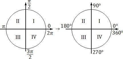 Чверти считают от начала отсчета (от 0 градусов)