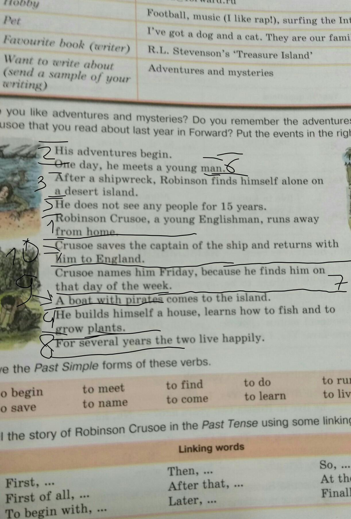 Crusoe that you read about last year in Forward? Put the events in the right order.