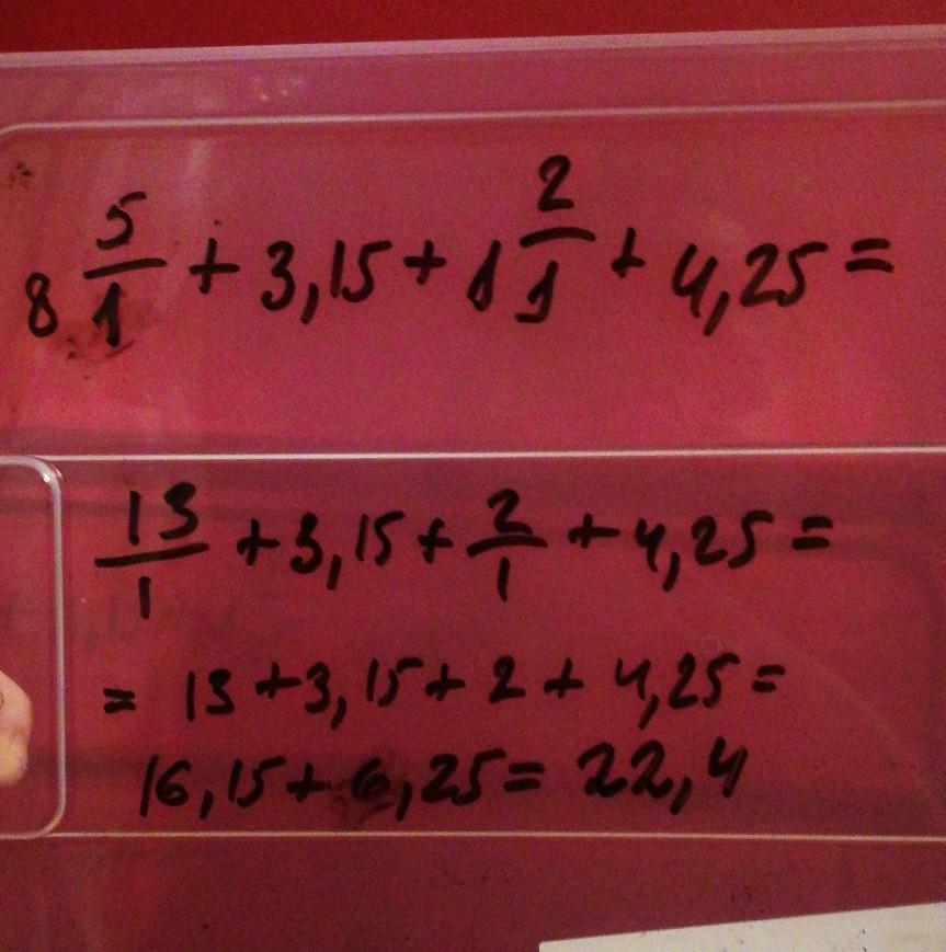 Упрощаем дроби, делим числители на замена телик получаем десятичную дробь или целое число и всё складываем