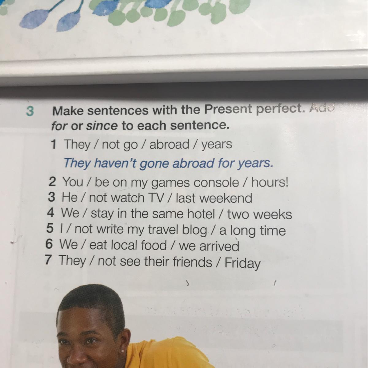 3 Make sentences with the Present perfect. Add for or since to each sentence.