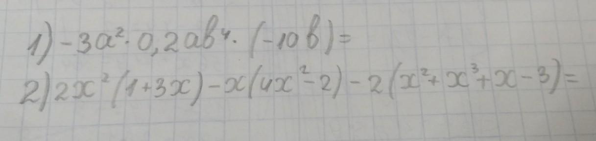 1) -3a^{2}*0.2ab^{4}*(-10b)= -3a^{2}*(-2ab^{5})=6a^{3}b^{5}