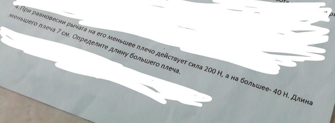 F1*L1=F2*L2 ⇒ L2=F1*L1/F2=200*0,07/40=0,35 м=35 см