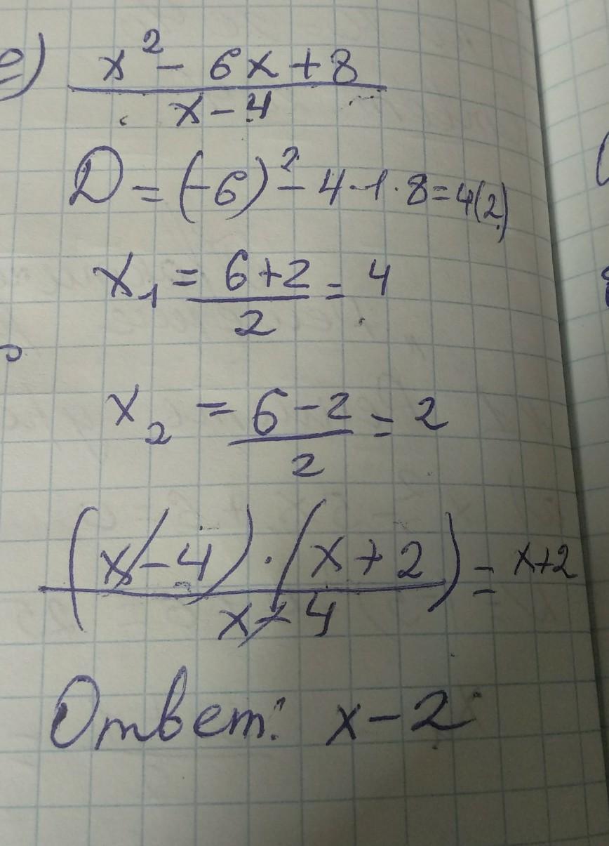 а в примере неправильно разложили квадратный трёхчлен на множители, в числителе должно быть (х-4)(х-2) , а не (х-4)(х+2) ....