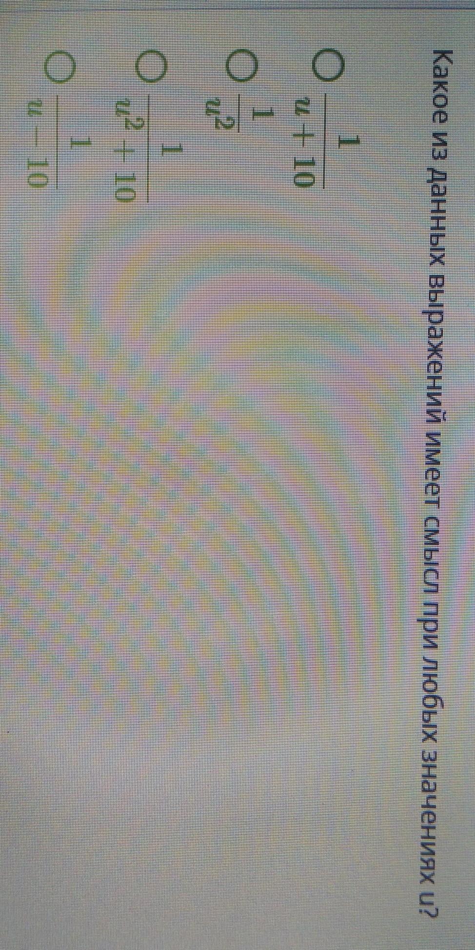 3) выражение не может быть равно 0, т.к. любое число в четной степени - положительное или 0, т.к. прибавляем еще 10, то 0 оно быть не может, значит выражение имеет смысл при всех значениях u.