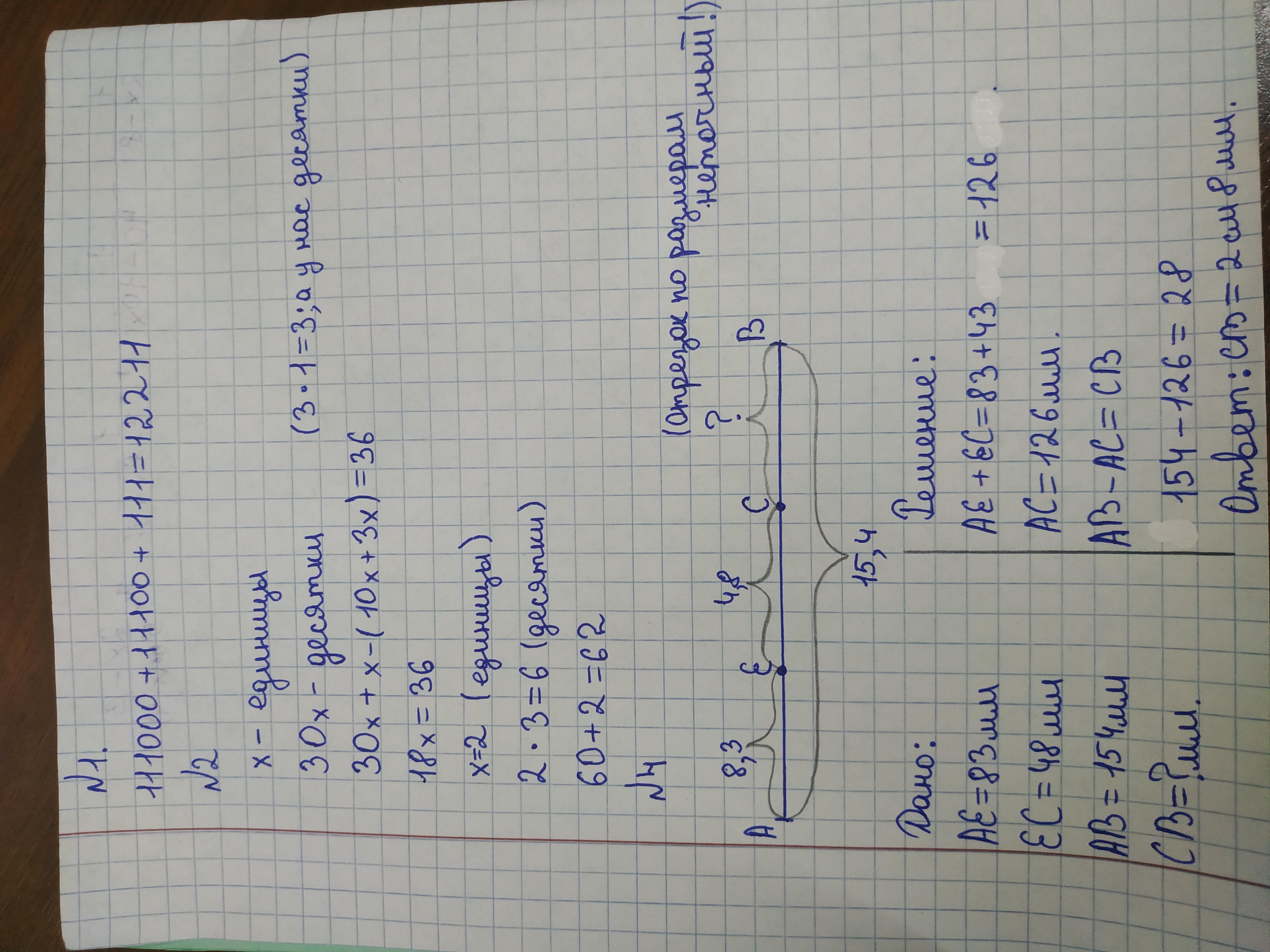что AE = 8 см 3 мм, EC = 4 см 8 мм. Какова длина отрезка