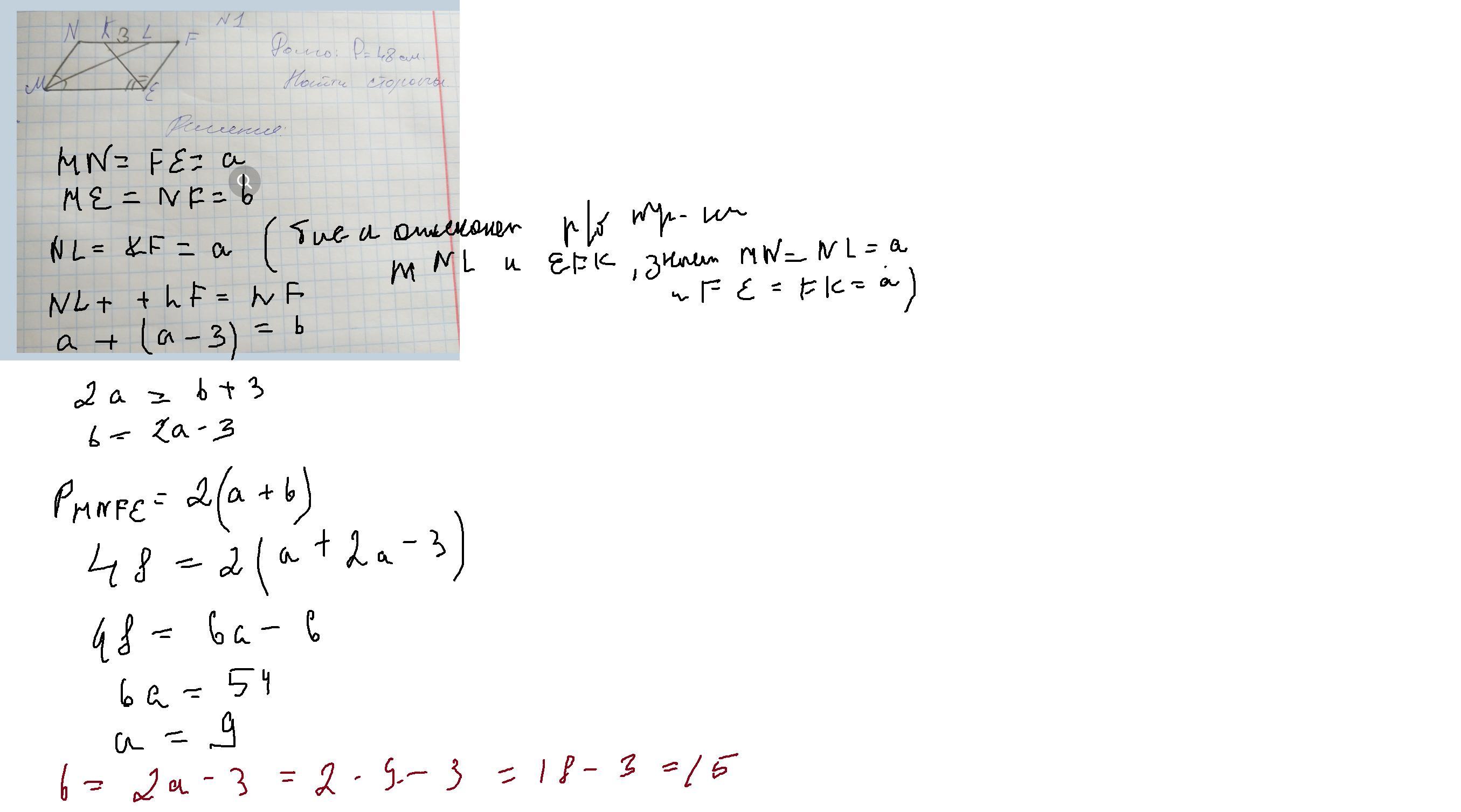 Дано: P пар-ма = 48 см, KL = 3, Найти стороны пар-ма. Рисунок в закрепе с доп данными
