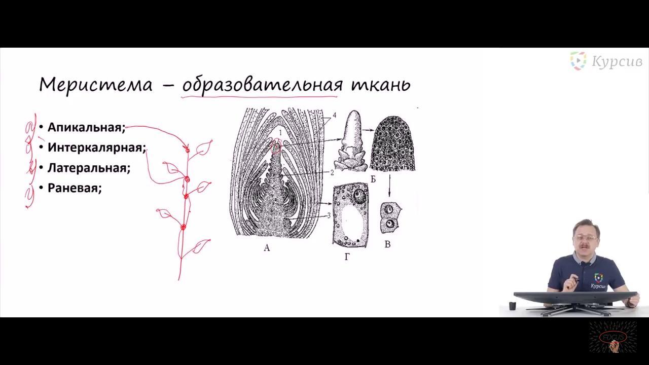 внизу корневой системы и на верхушках стеблей (обеспечивает рост растения в высоту и развитие корневой системы) – верхушечная образовательная ткань;