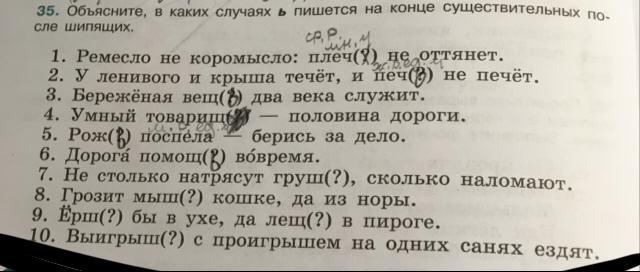 9. Ерш_ (сущ муж.р. 2 скл.) бы в ухе, да лещ_ (сущ муж.р. 2 скл.) в пироге.