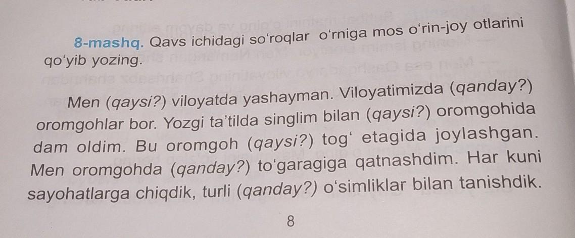 Я живу ... области. В нашей области есть лагери такие как ... . Летом я с сестрёнкой отдыхали в ... лагере. Этот лагерь находится ... в нижней горной части . Я участвовал на .... кружках в лагере. Каждый день мы выходили в путешествие, мы ознакомились с разными ...... .