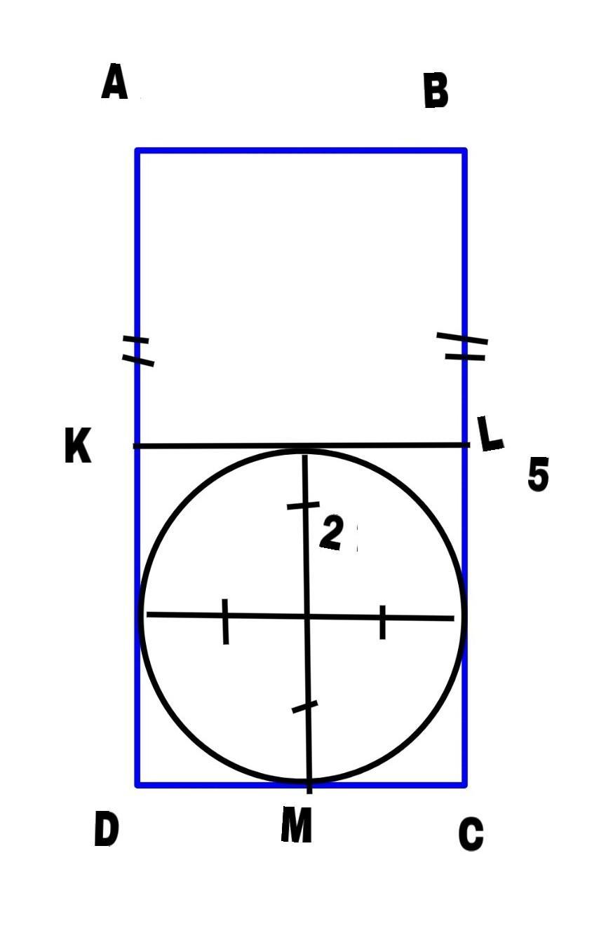 1. В квадрат KLM вписасана окружность с радиусом 2, следовательно сторона квадрата будет равна диаметру окружности (4)