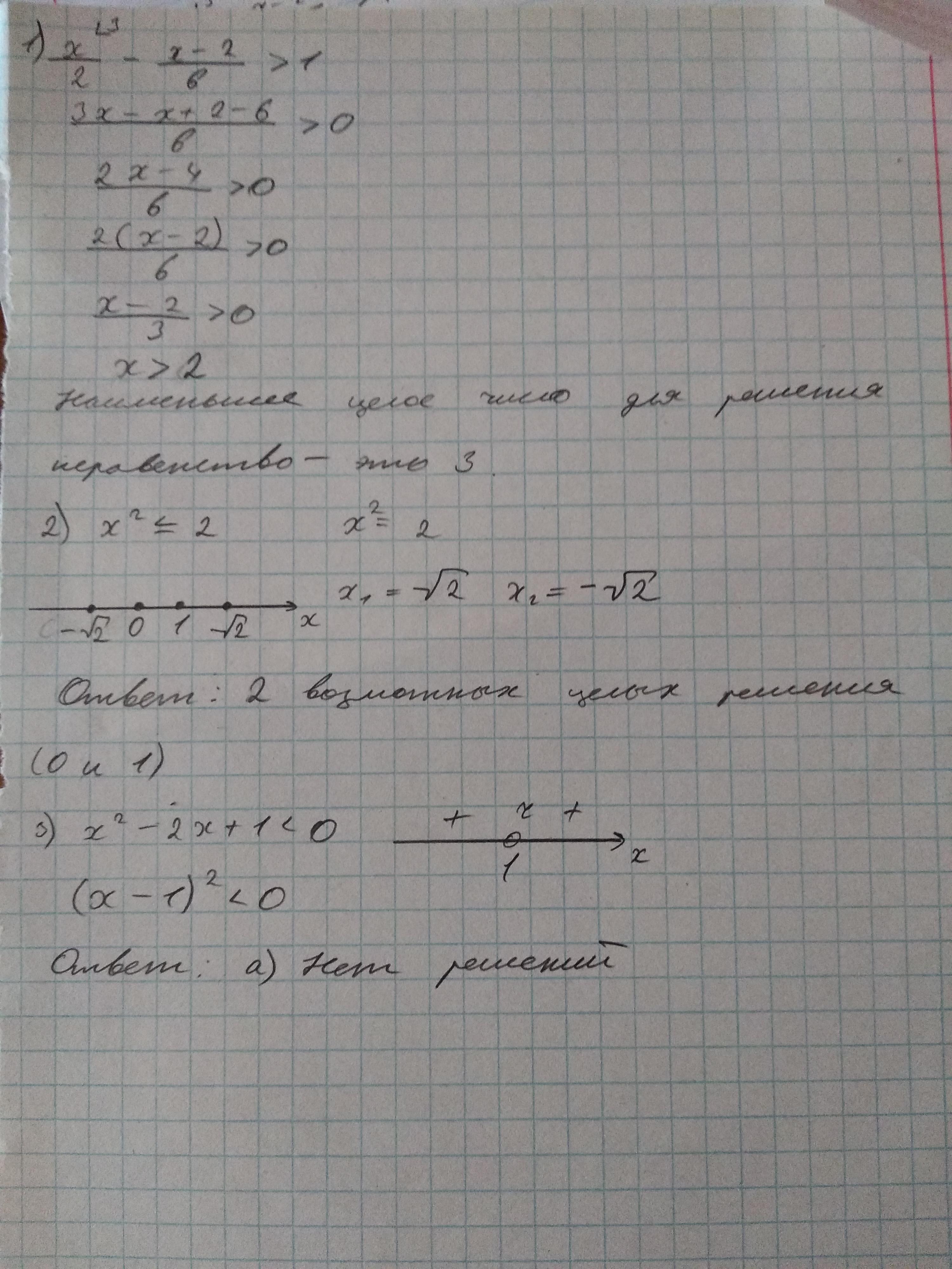 А по скольку нам нужно < (т. е. -), то решений нет (сама точка тоже не считается, т. к. она выколота)