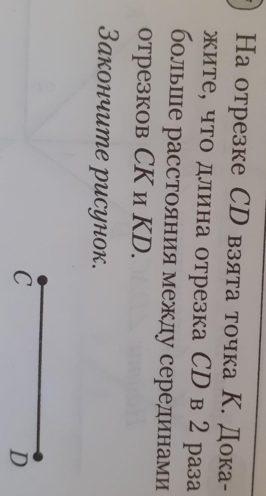 На отрезке CD взята точка К. Докажите что длина отрезка CD в 2 раза больше расстояния между серединами отрезков CK и KD.