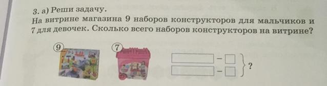 Ответ:1. Конструктор для мальчиков - 9 шт 2 Конструктор для девочек - 7 шт
