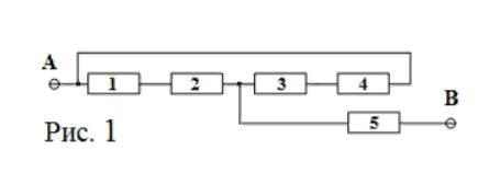 Найдите общее сопротивление цепи, изображенной на рис. 1. Сопротивление каждого резистора R = 5 Ом. Чему равна сила тока в резисторе 5, если напряжение между клеммами А и В равно 12 В?