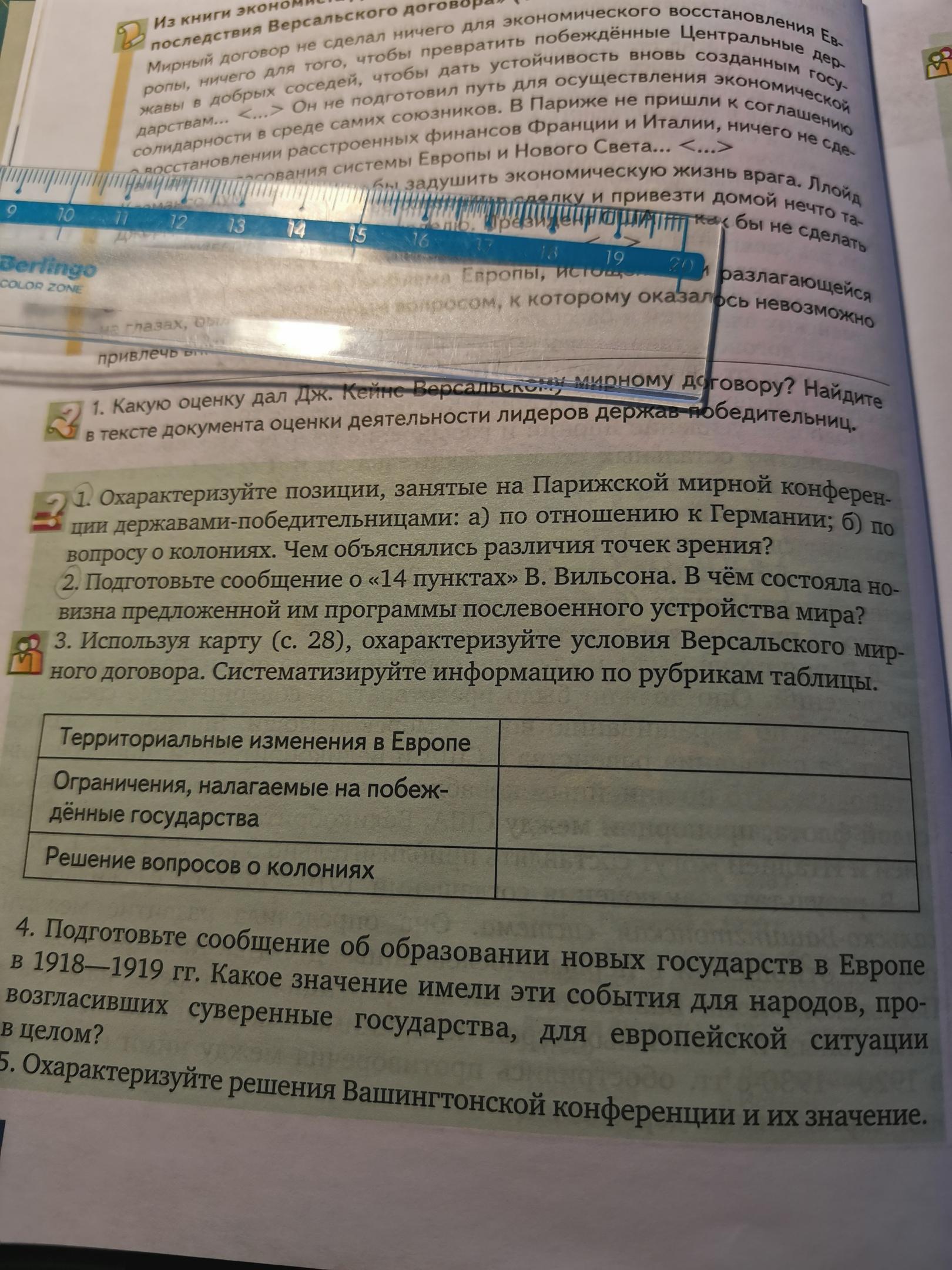 Германия потеряла Эльзас-Лотарингию ,Австрия потеряла Тироль,Польша получила выход к морю и получила территории в Силезии . Германии запрещалось иметь армию более 100 к и иметь некоторые виды вооружений . Германия потеряла все свои колонии
