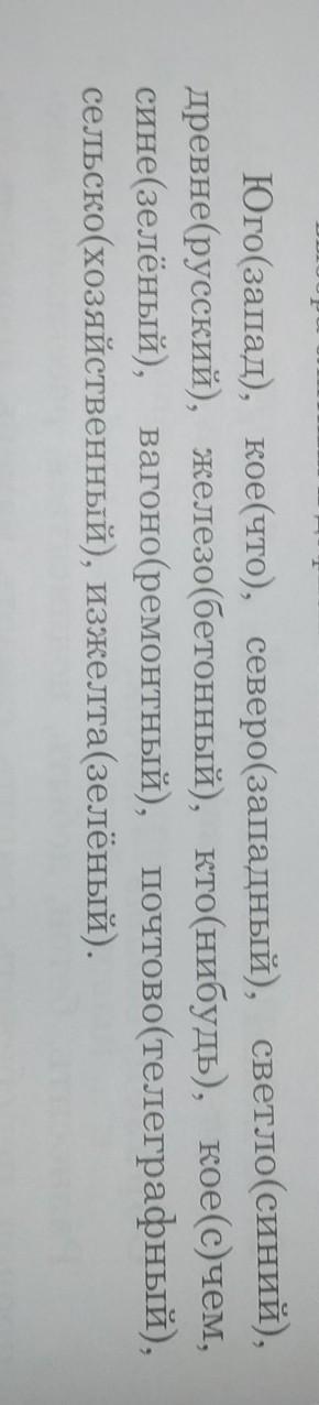 Юго-запад, северо-западный (сторона света), кое-что, светло-синий, сине-зелёный, изжелта-зелёный (оттенок), древне-русский, железо-бетонный, кто-нибудь, кое с чем, почтово-телеграфный, вагоноремонтный, сельскохозяйственный.