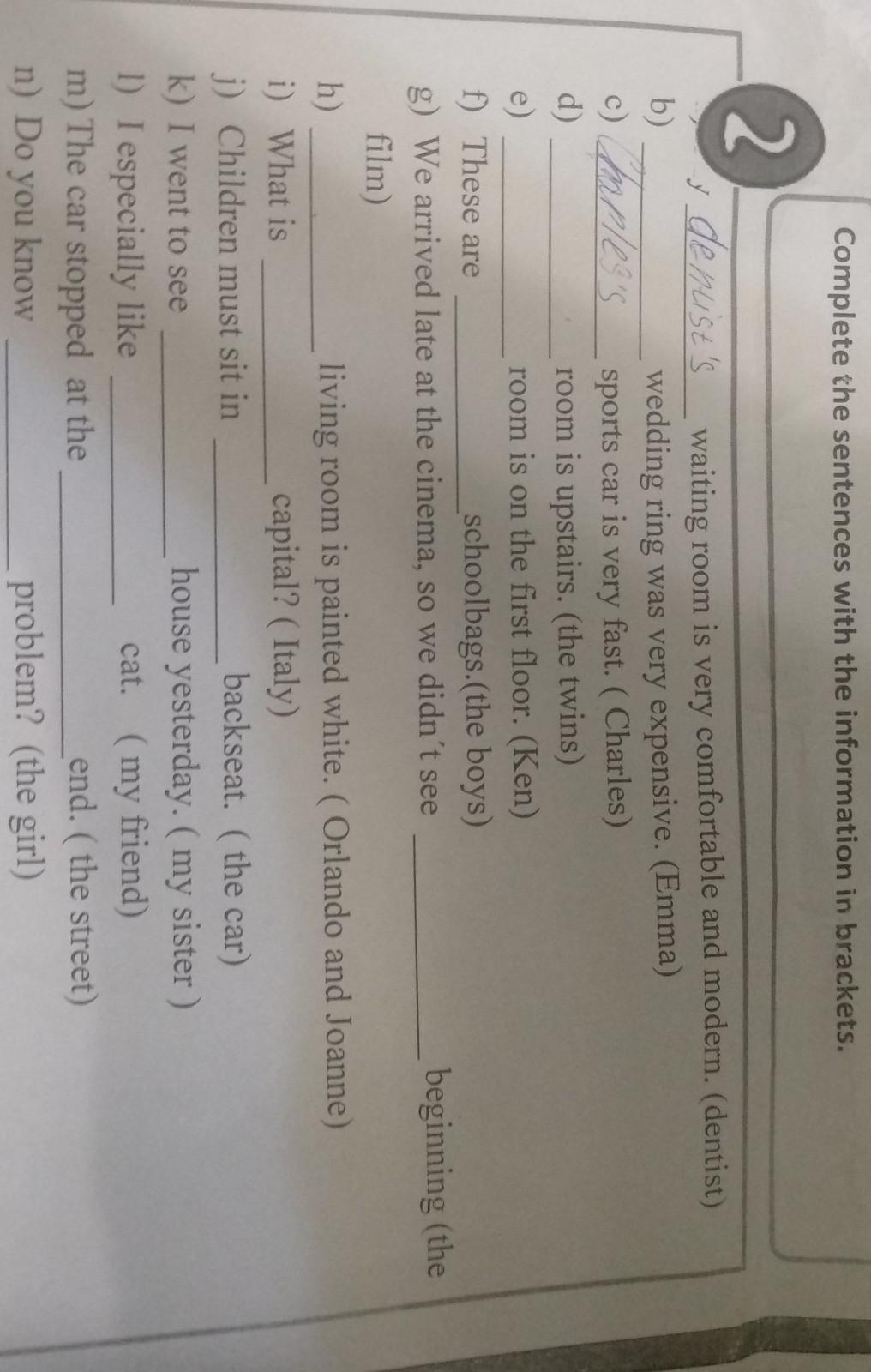 b) Emma’s c) Charle’s d) the twins’ e) Ken’s f) the boys’ g) the film’s h) Orlando’s and Joanne’s i) Italy’s j) the car’s k) my sister’s l) my friend’s m) the street’s n) the girl’s ❤️