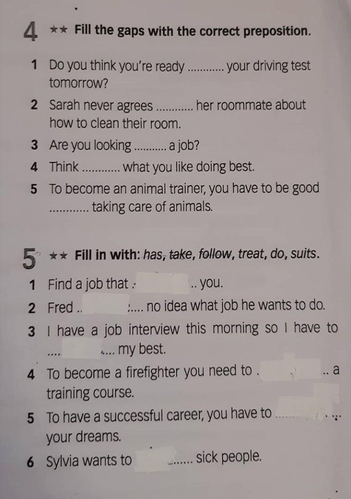 N5 (1) suits (2) has (3) do (4) take (5) follow (6) treat