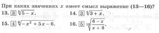 Выражение 13 имеет смысл при любых действительных числах, поскольку корень нечетной степени извлекается из любого числа.