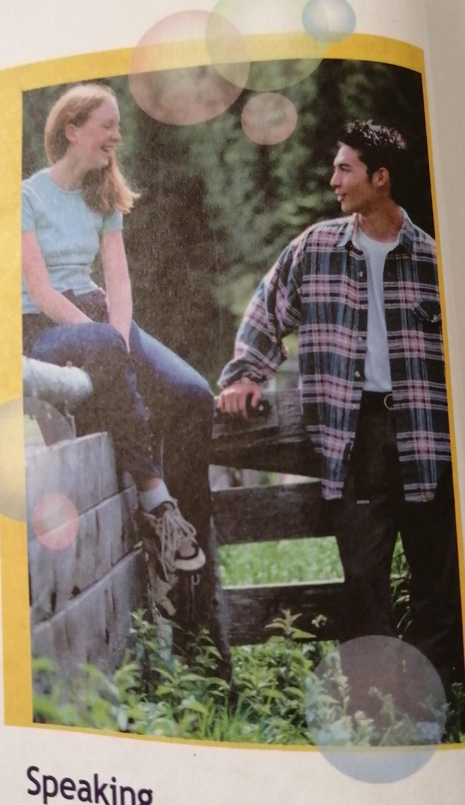 1. This picture show two friends talking in the park