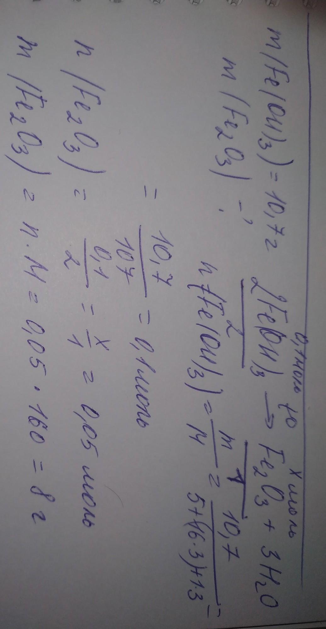 Какую массу оксида можно получить при разложении 10,7 г гидроксида железа (III)?