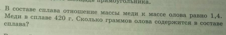 В составе сплава отношения массы меди к массе олова равно 1,4.Меди в сплаве 420 г.Сколько граммов олова содержится в составе сплава?
