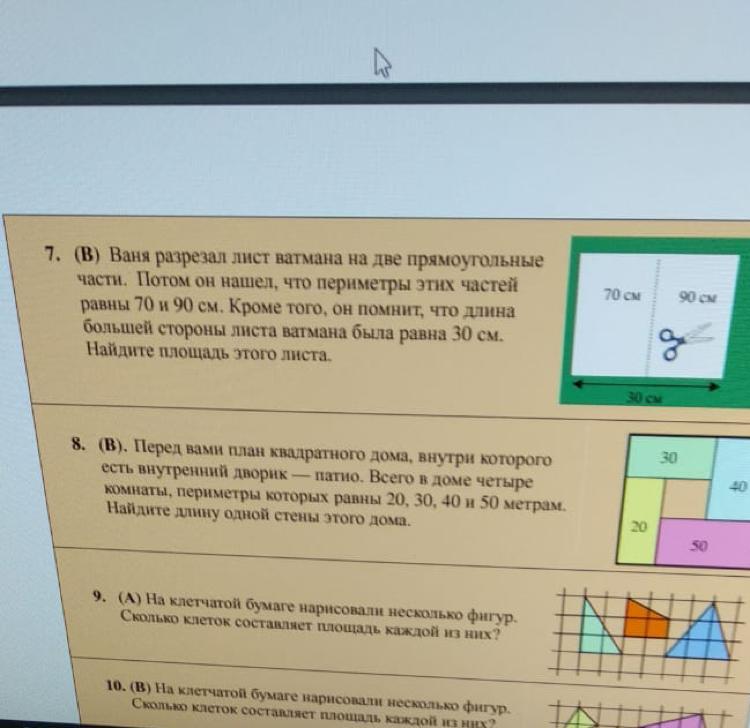 Это элементарно. Периметр целого ватмана равен сумме частей. Периметр большого ватмана = 70 см + 90 см = 160 см. P = 2(a+b) = 160