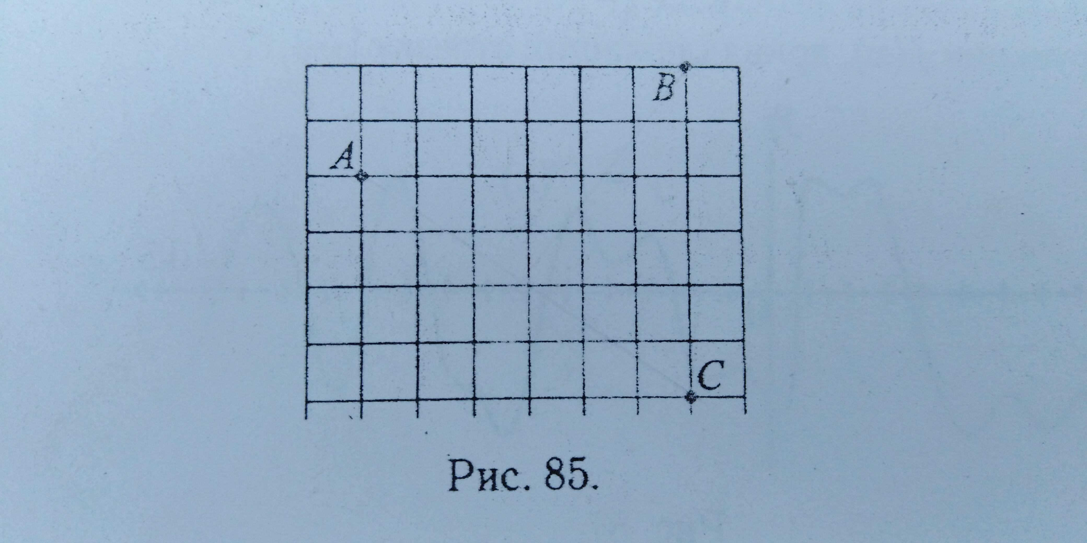 На клетчатой бумаге с размером клетки 1х1 отмечены точки A, B и C. Найдите расстояние от точки B до середины отрезка AC