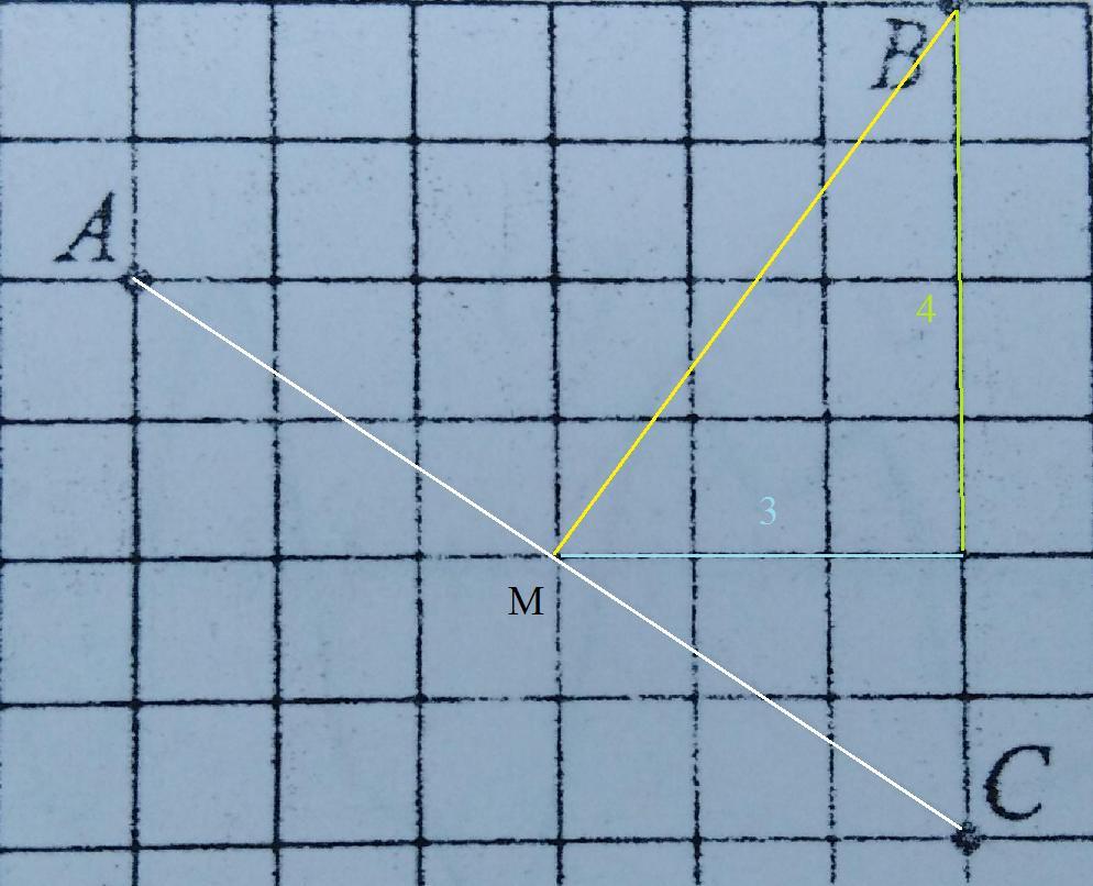 ВМ - гипотенуза прямоугольного треугольника с катетами 3 и 4.