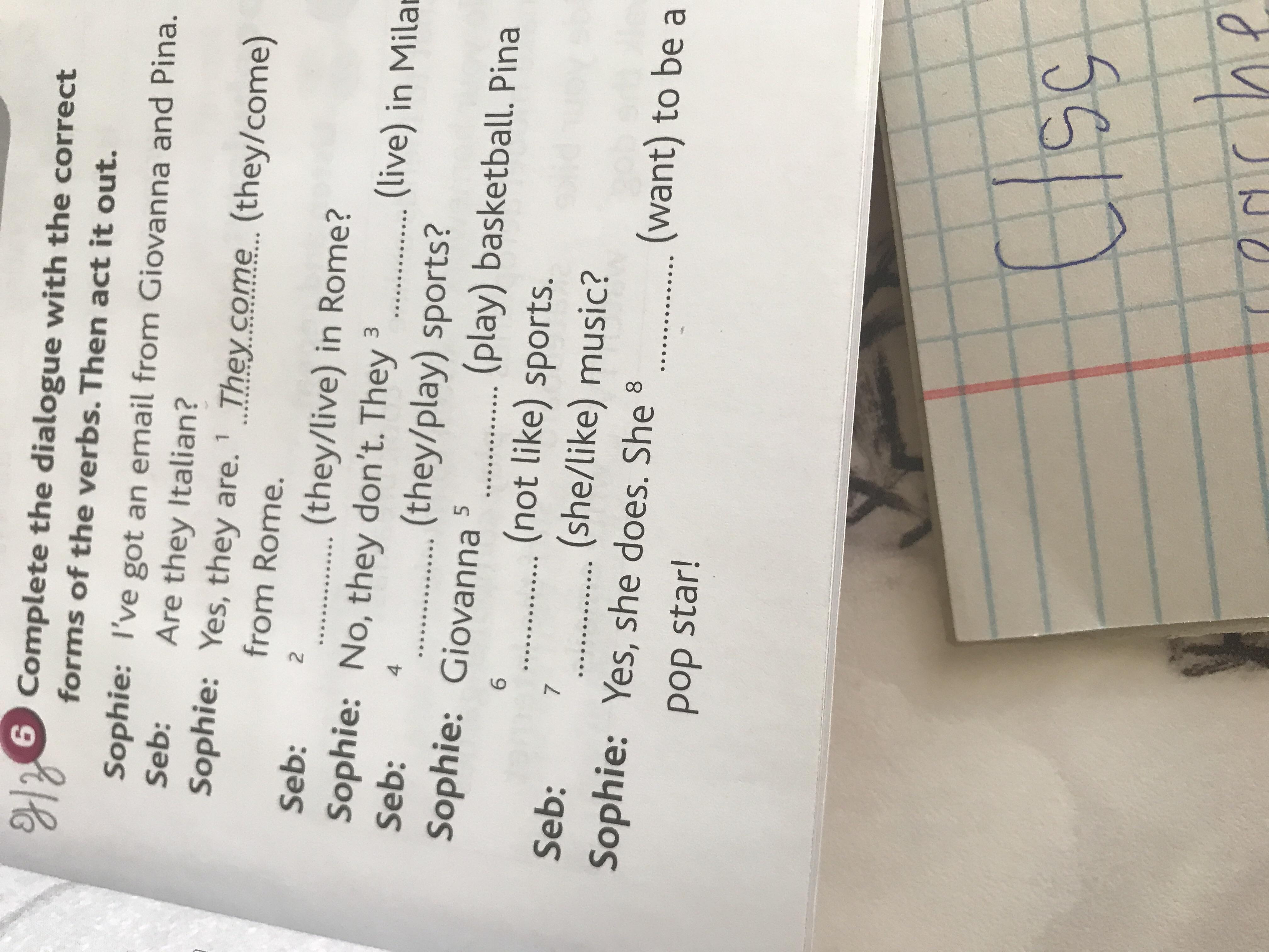 Софи: Джованна играет в баскетбол. Пина не любит спорт.