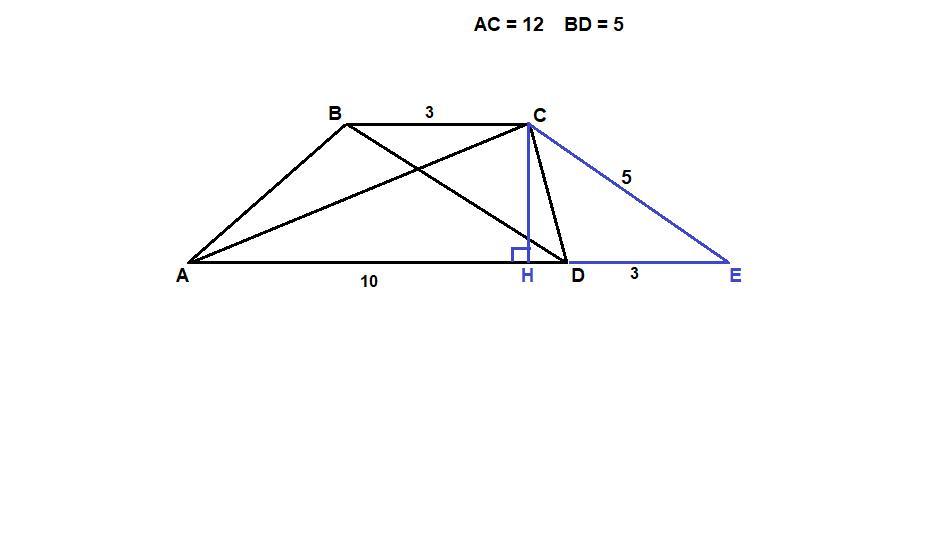 Итак, можно найти площадь треугольника АСЕ (в нем известны все три стороны). А площадь трапеции равна площади этого треугольника.