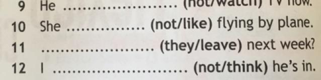 10)She doesn’t like flying by plane. (Pr.Simple тк она не любит летать на самолете вообще, а не в данный момент)