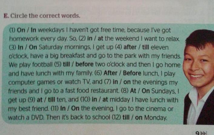 On, at, on, till, till, after, in, on, at, at, in, on.