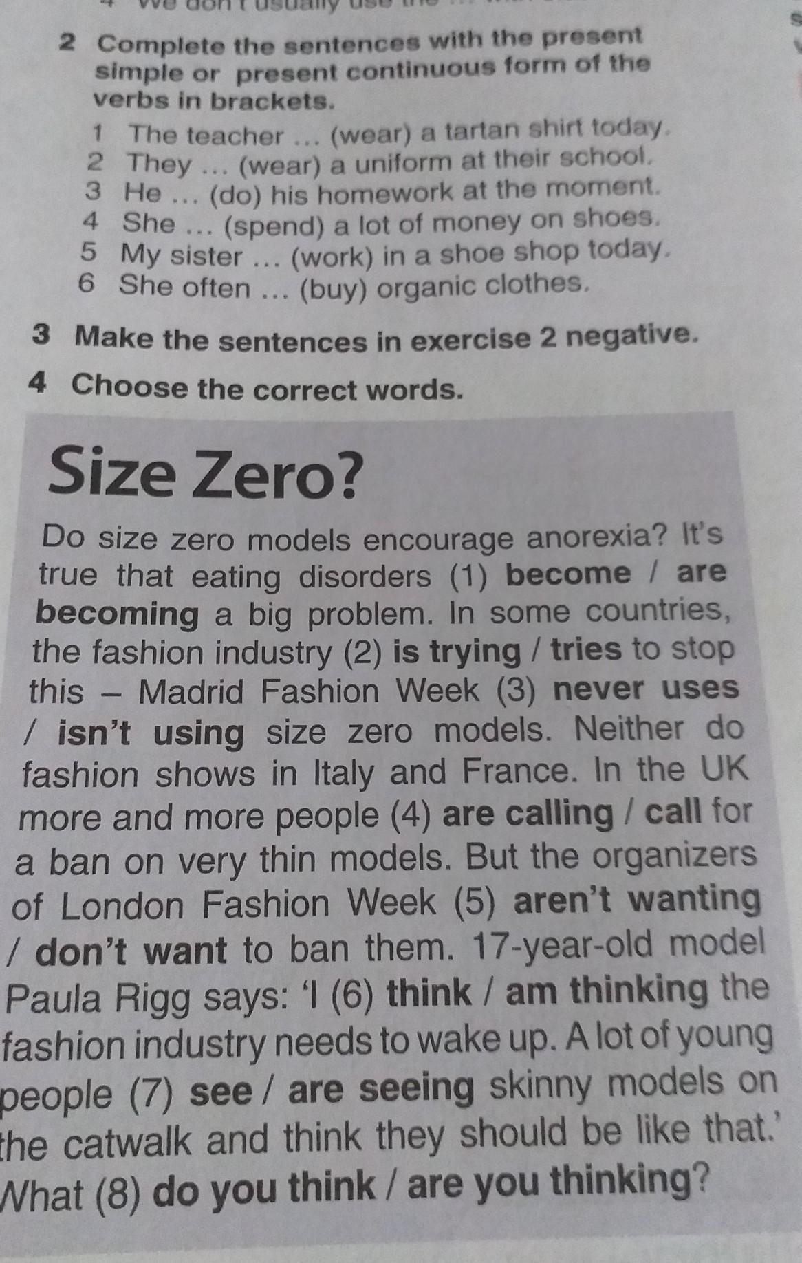 4)are becoming, is trying, never uses, don’t want, think , see, do you think.