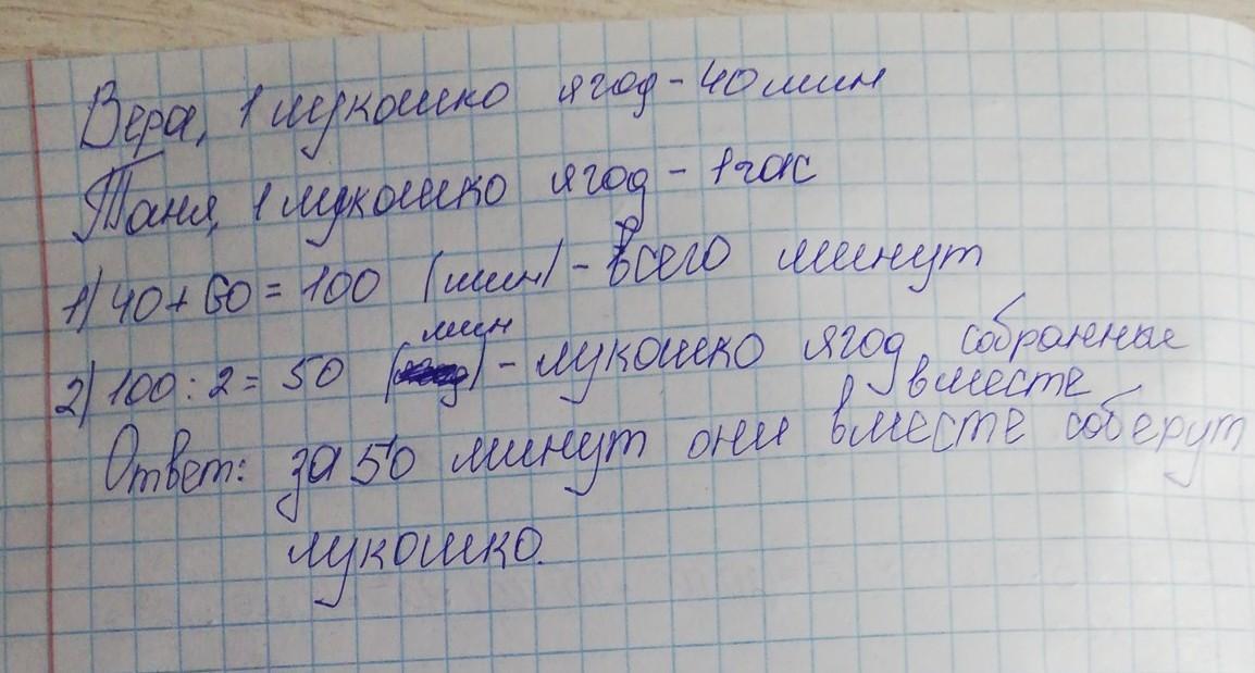 Вера может набрать лукошко ягод за 40 минут А Таня за 1 час за сколько минут девочки наберу такой лукошко если будут собирать ягоды вместе