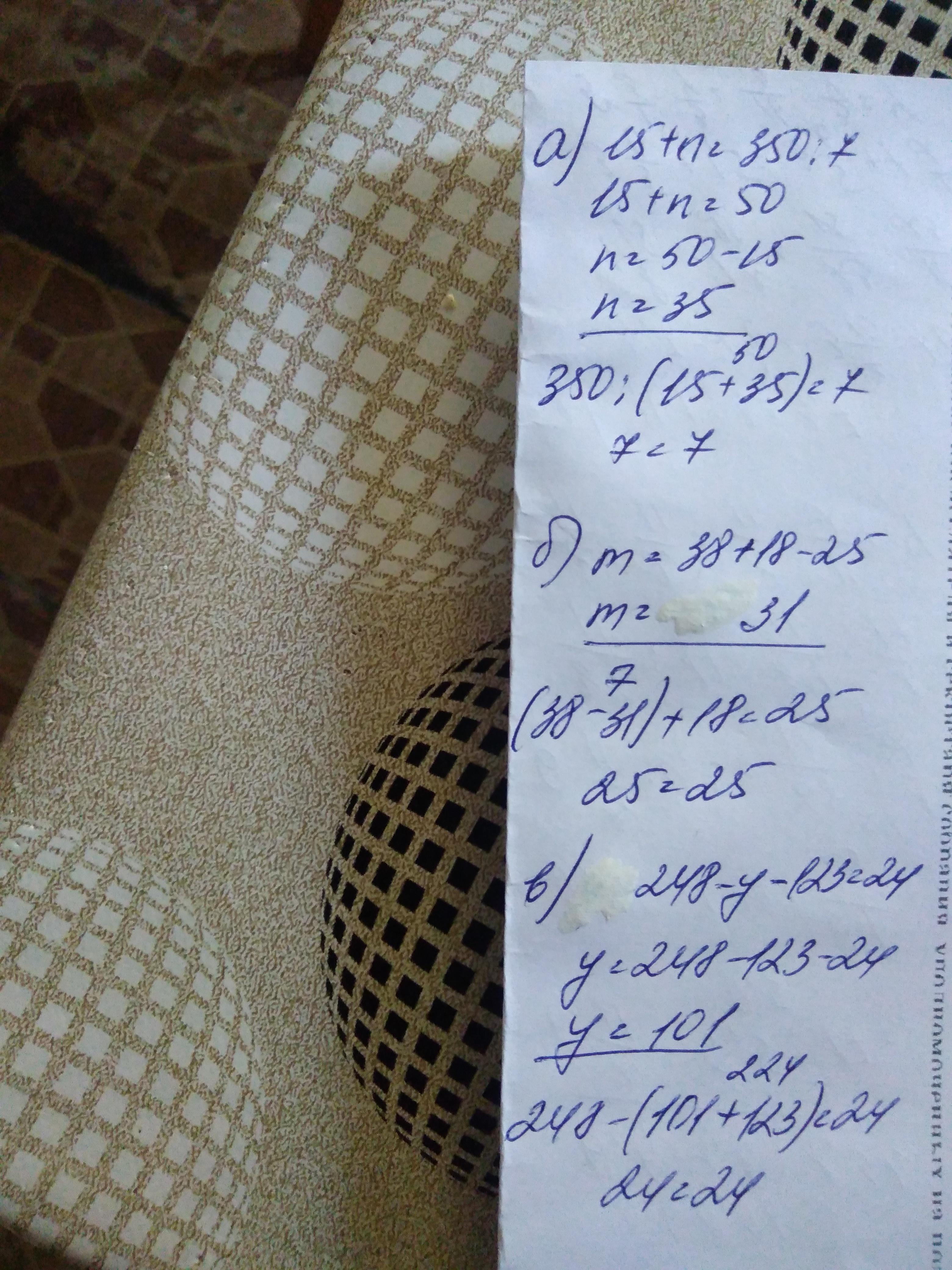 a)350:(15+n)=7