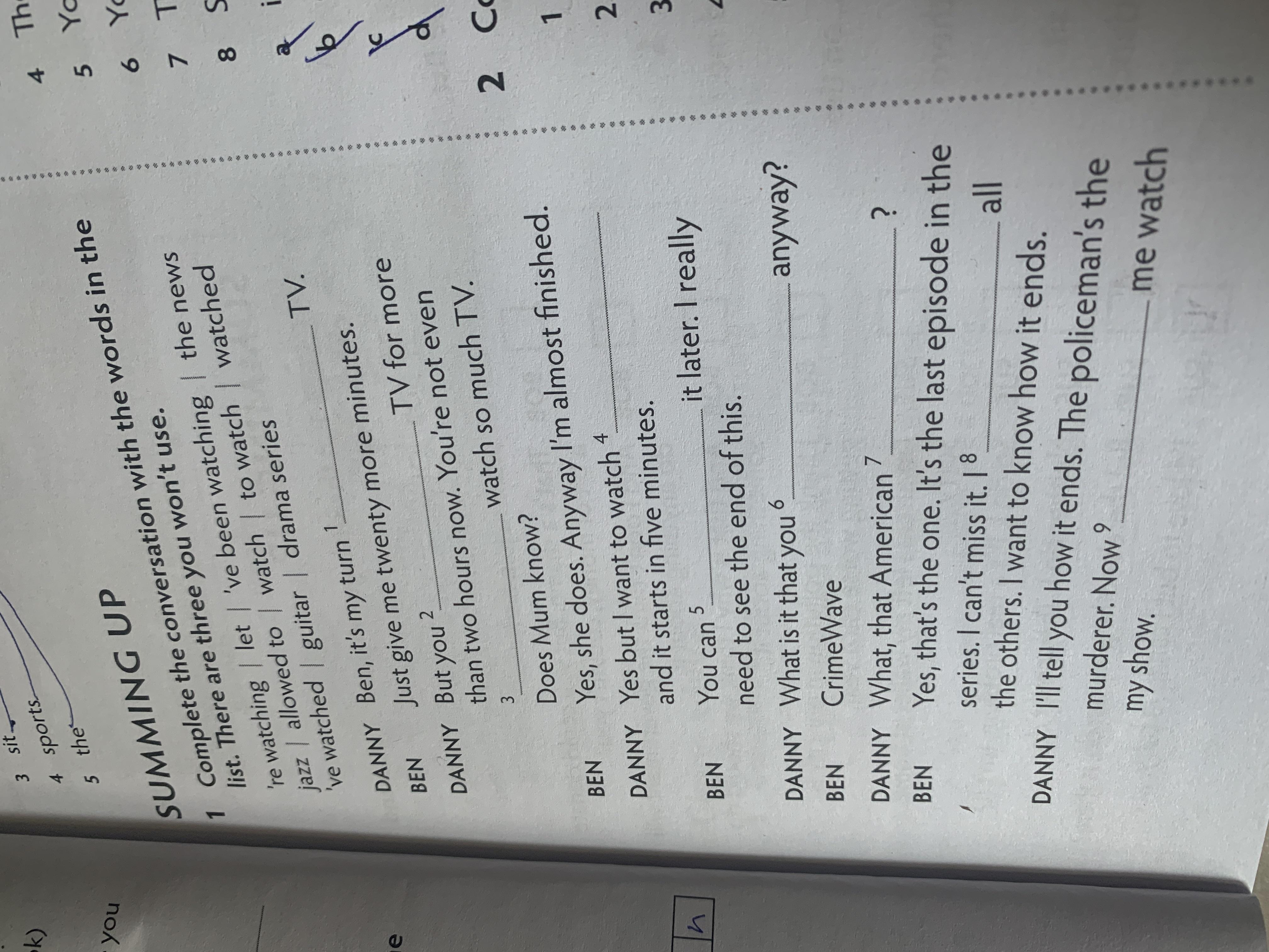 1 Complete the conversation with the words in the list. There are three you won't use.