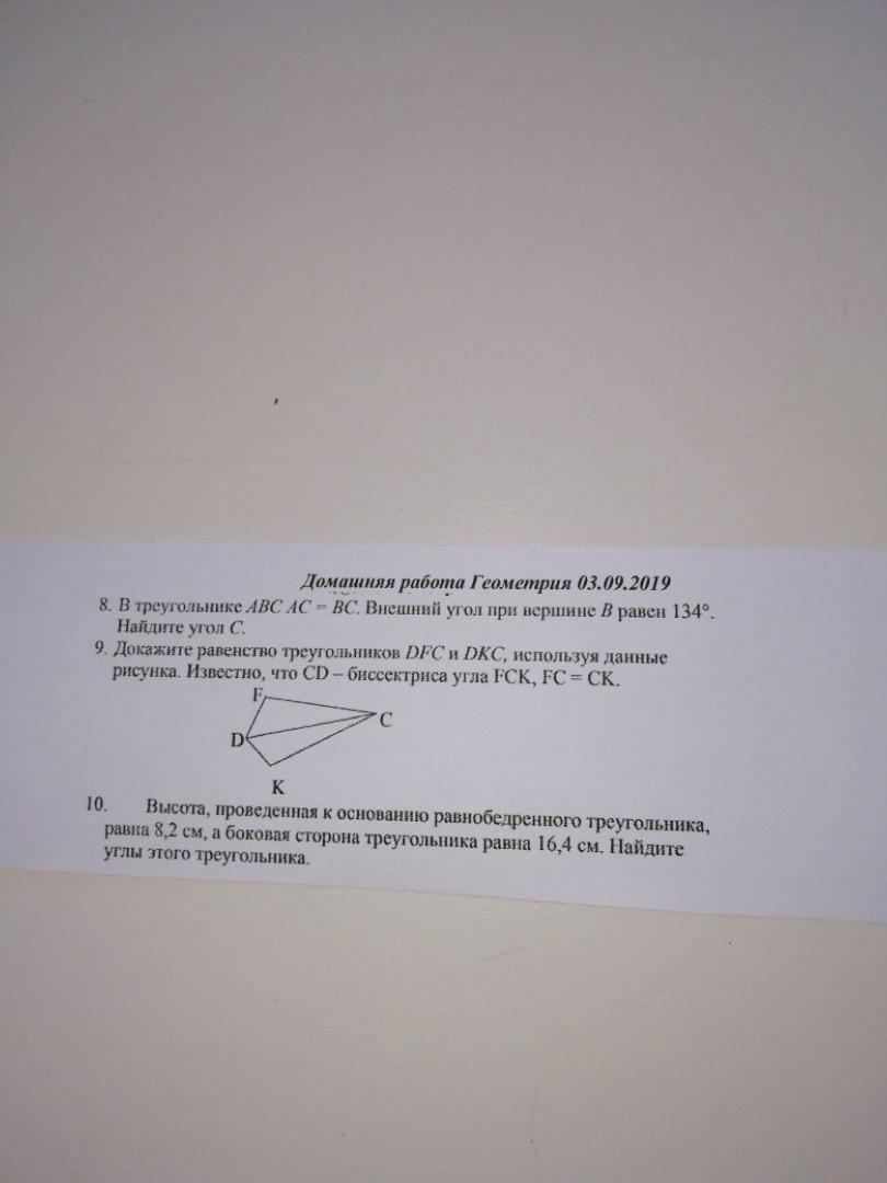 9. DFC=DKC, т.к уголFCD=уголDCK, FC=CK, DC-общая сторона