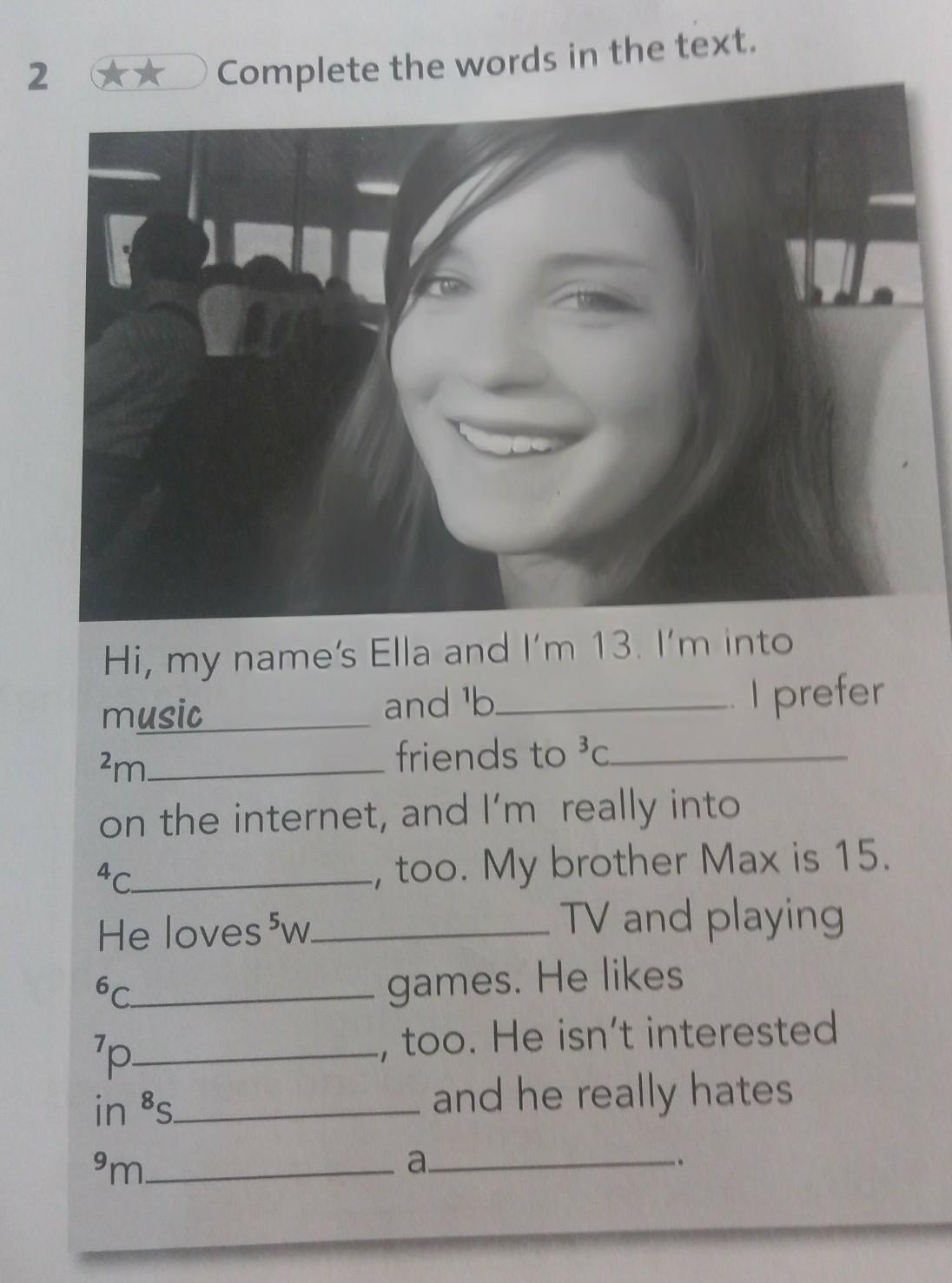 Ответ: Hi, my name's Ella and I'm 13. I'm into music and books. I prefer message friends to computer on the internet, and I'm really into cakes, too. My brothers in 15. He loves watch TV and playing computer games.He likes potatoes, too. He isn't interested in sailing and he really hates musics and apples.