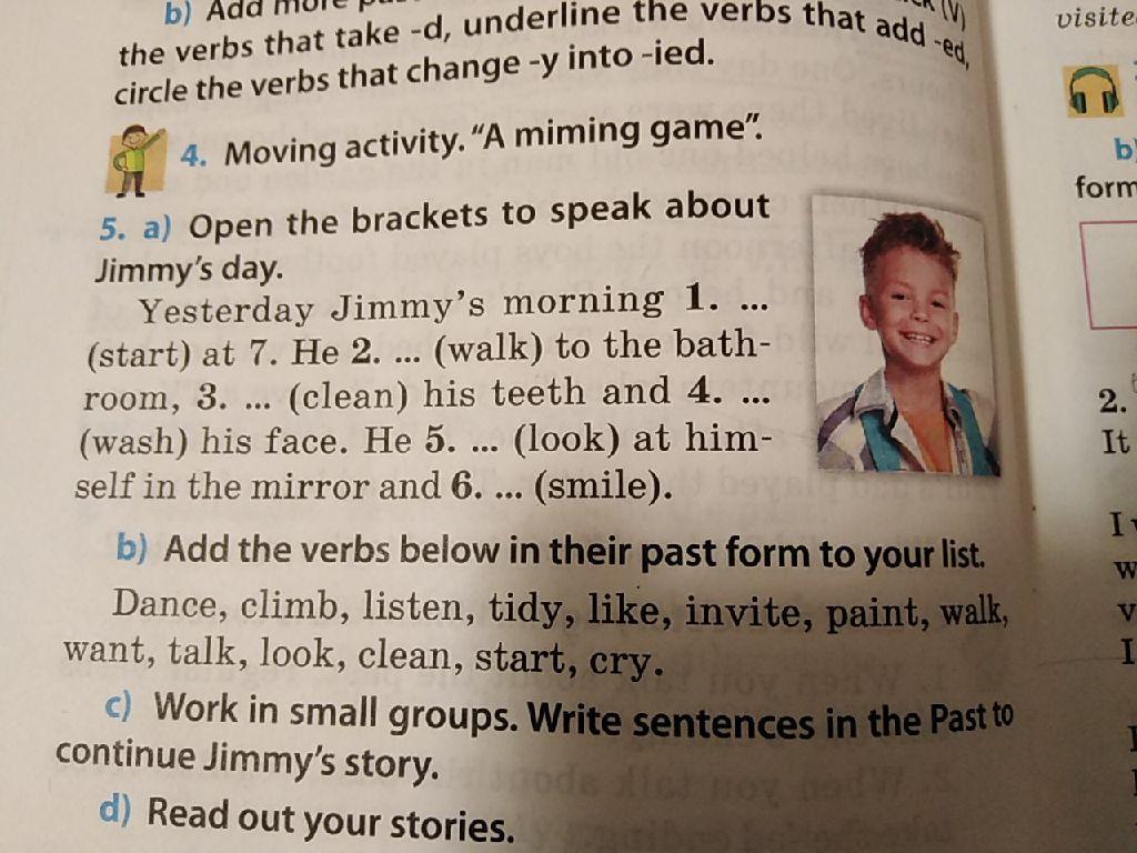 danced climbed listened tydied liked invited painted walked wanted told looked cleaned started cried